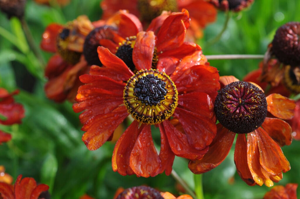 Helenium may be upright, clump-forming annuals, biennials or herbaceous perennials with simple leaves and showy daisy-like flower-heads over a long period