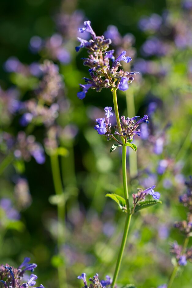 Nepeta can be annuals or, more commonly, perennials, with paired, usually aromatic leaves, and terminal spikes or panicles of 2-lipped, tubular flowers