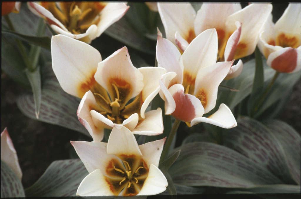 - Greigii Group tulips have large, single, bowl-shaped flowers in the range yellow to red, often with contrasting margins, and flower in early and mid-spring; the grey-green leaves are usually mottled with purple or maroon
