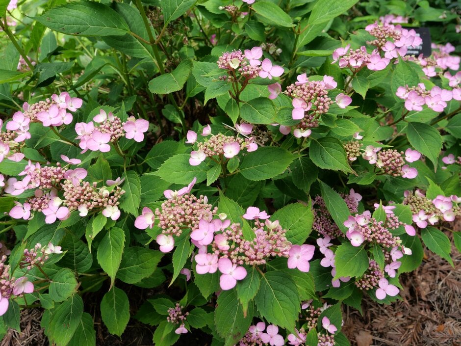 A compact, mound-forming deciduous shrub to 50cm high, with narrowly ovate, serrated dark green leaves which turn to shades of red and purple in the autumn. Large, flat blue or pink lace cap flowers appear from July through to September. An ideal variety for ground cover in more shaded areas of the garden