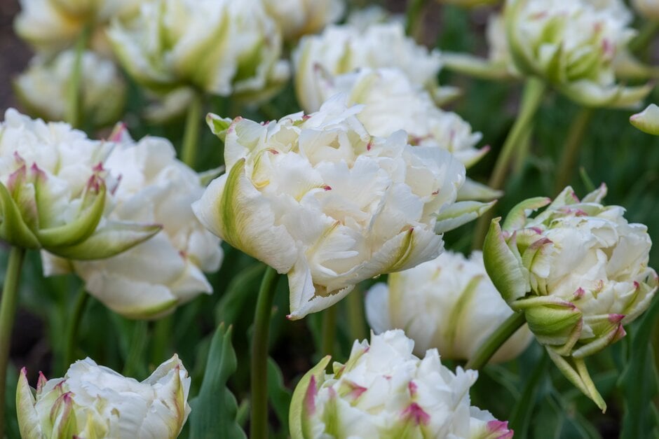 - Double Early Group tulips flower in mid-spring, with double, bowl-shaped flowers, sometimes flecked with a contrasting colour