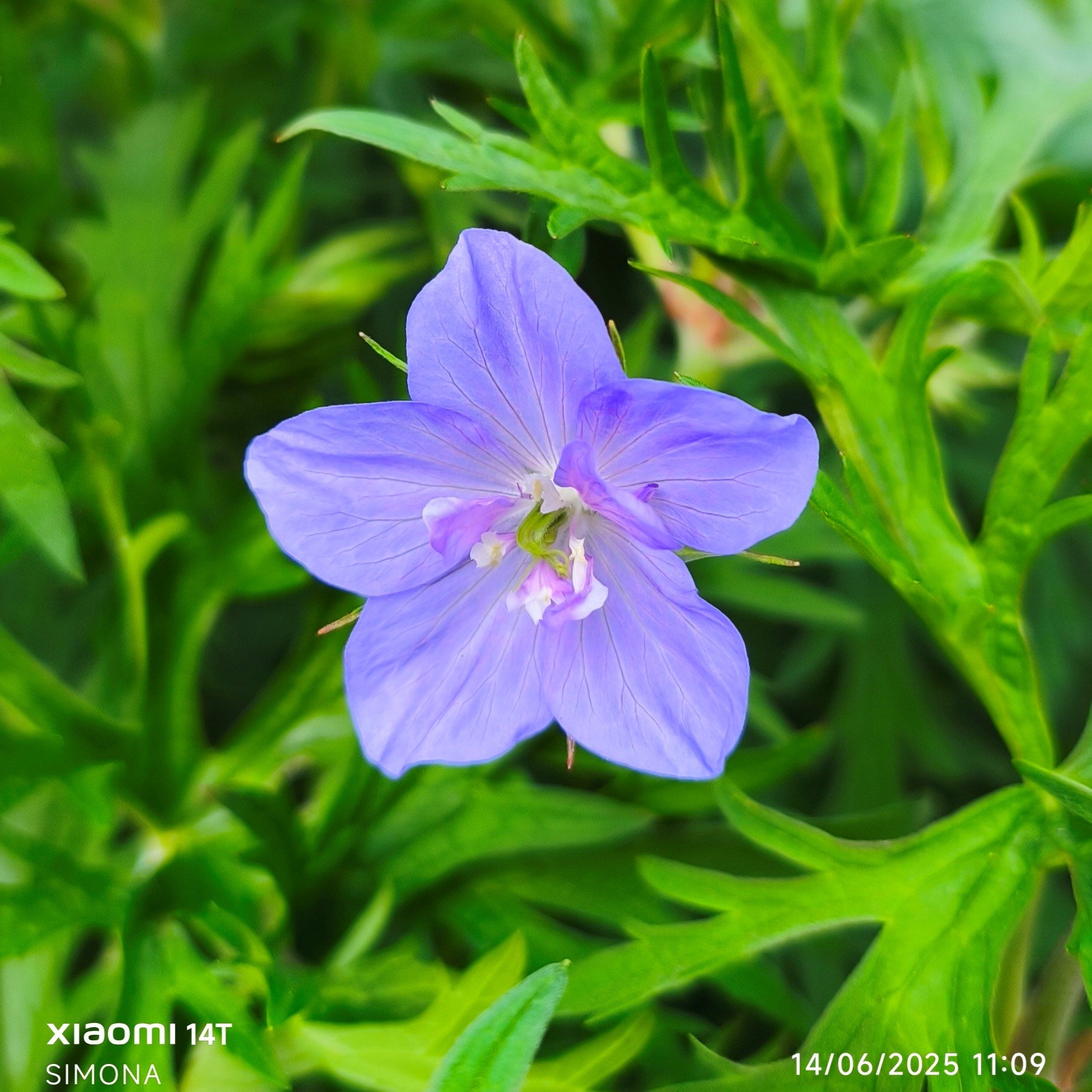 Geranium can be annuals, biennials and perennials, herbaceous or evergreen, with rounded, usually palmately lobed or divided leaves, and lax inflorescences of rounded, 5-petalled flowers