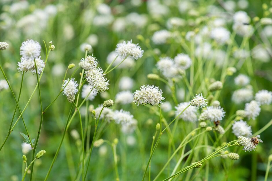 Sanguisorba are rhizomatous herbaceous perennials with attractive, pinnate leaves and branched stems bearing terminal spikes of small fluffy flowers with conspicuous stamens