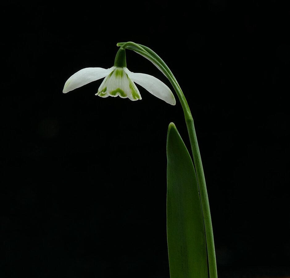 Galanthus are dwarf bulbous perennials with linear or strap-shaped leaves, and solitary, often honey-scented, nodding flowers with 3 white outer tepals and 3 smaller inner ones often marked with green