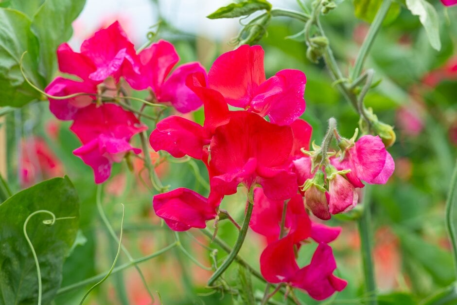 Lathyrus can be annuals or herbaceous or evergreen perennials, mostly climbing, with pinnate leaves ending in a tendril, and showy pea-like flowers, fragrant in some species