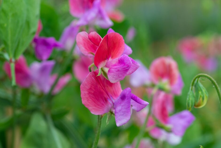 Lathyrus can be annuals or herbaceous or evergreen perennials, mostly climbing, with pinnate leaves ending in a tendril, and showy pea-like flowers, fragrant in some species