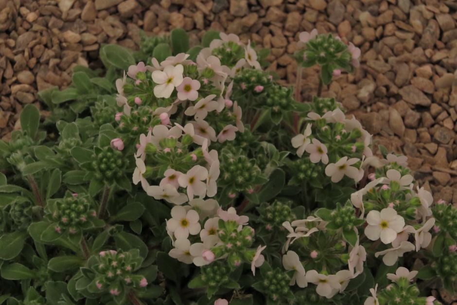 Androsace can be annuals, biennials or evergreen perennials forming mats or compact cushions, with salver-shaped flowers which may be solitary or in umbels