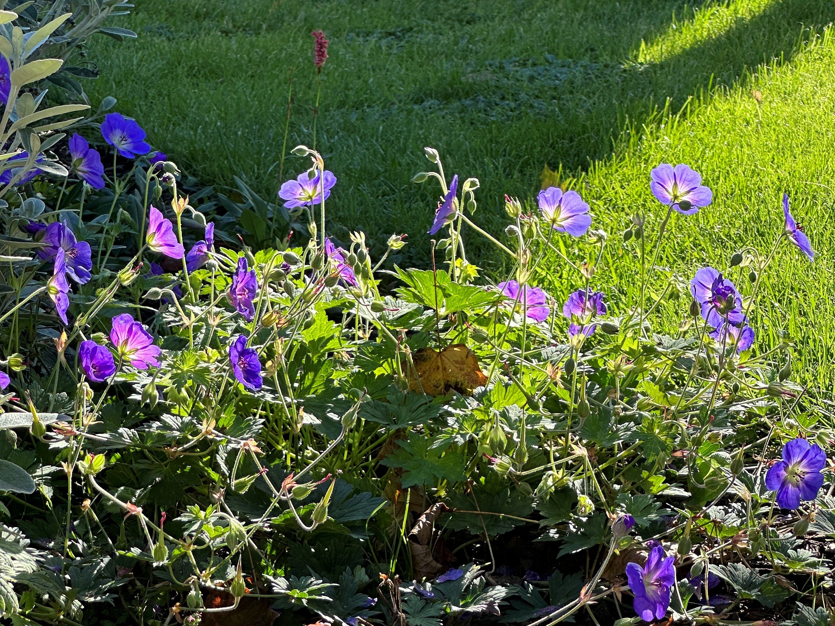 Geranium can be annuals, biennials and perennials, herbaceous or evergreen, with rounded, usually palmately lobed or divided leaves, and lax inflorescences of rounded, 5-petalled flowers