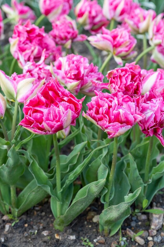 - Double Early Group tulips flower in mid-spring, with double, bowl-shaped flowers, sometimes flecked with a contrasting colour