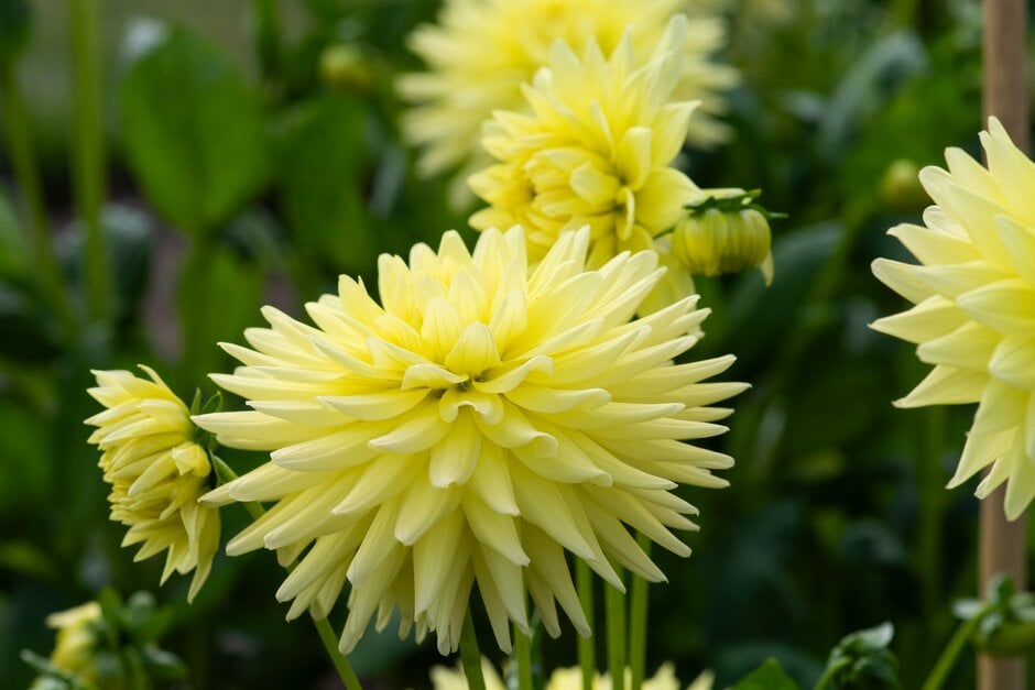 Dahlia are tuberous rooted perennials with pinnately divided leaves and showy flowerheads, double in many cultivars, in summer and autumn