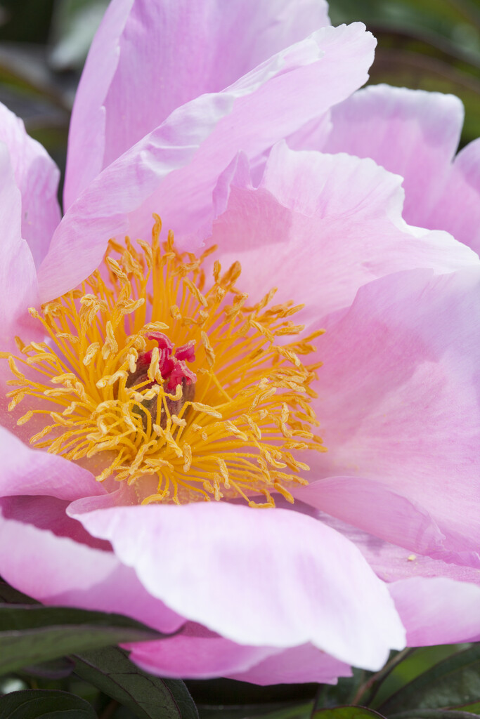 A clump-forming herbaceous perennial to around 90cm high, with divided green leaves. In early summer produces satin pink single flowers with clusters of golden yellow stamens in the centre