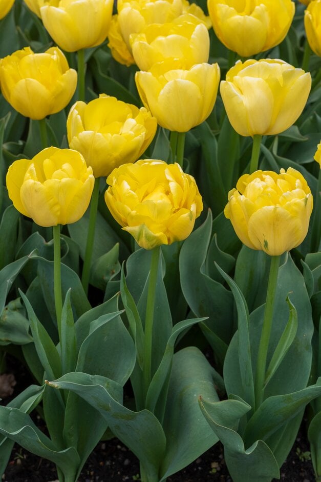 - Double Early Group tulips flower in mid-spring, with double, bowl-shaped flowers, sometimes flecked with a contrasting colour