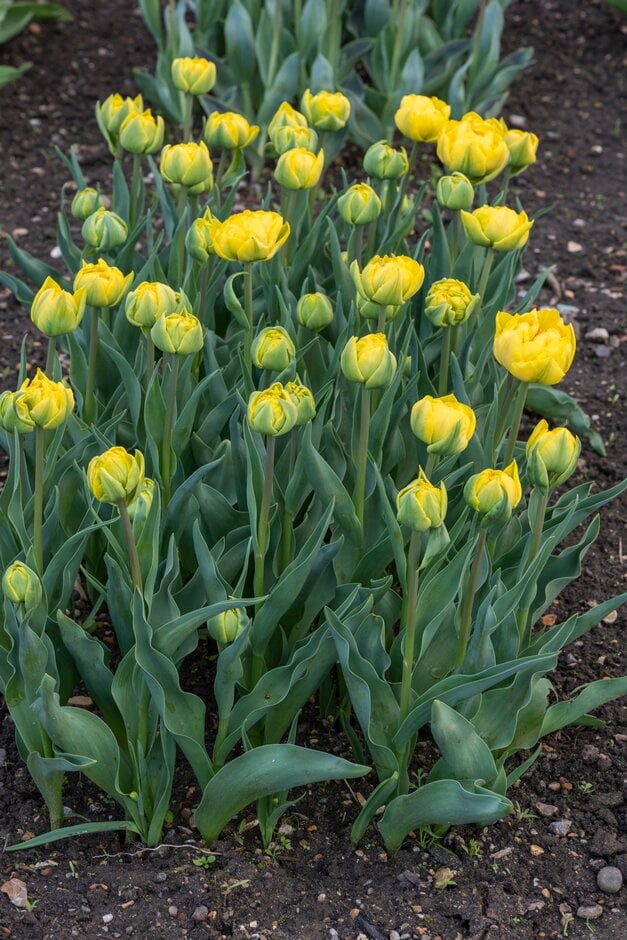 - Double Early Group tulips flower in mid-spring, with double, bowl-shaped flowers, sometimes flecked with a contrasting colour