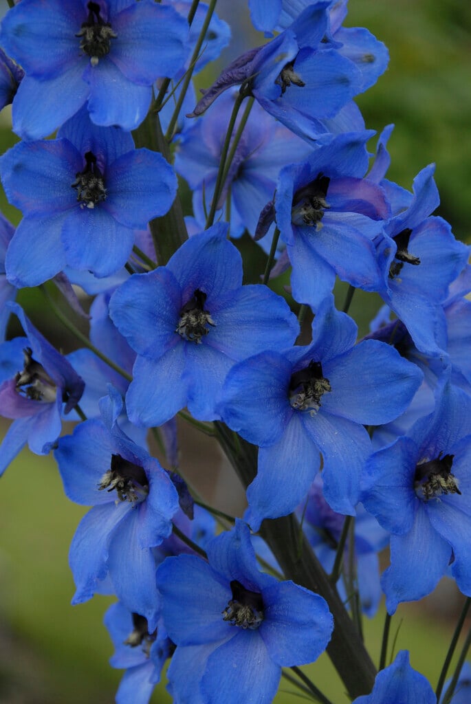Delphinium can be annuals, biennials or perennials, with palmately lobed basal leaves and showy bowl-shaped flowers in spikes, racemes or panicles