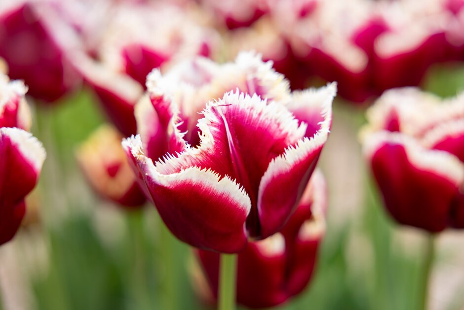 - Fringed Group tulips flower in late spring, with single, cup-shaped flowers with finely-fringed tepals