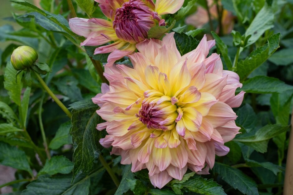 Grow in fertile, humus-rich, well-drained soil, enriched with organic matter, in full sun. Pinch out growing tips to encourage bushy plants and stake - see staking perennials. Water as needed in dry periods. Lift and store tubers in autumn to replant, or use as a source of cuttings, in spring. See dahlia cultivation and our video How to plant dahlia tubers and care tips