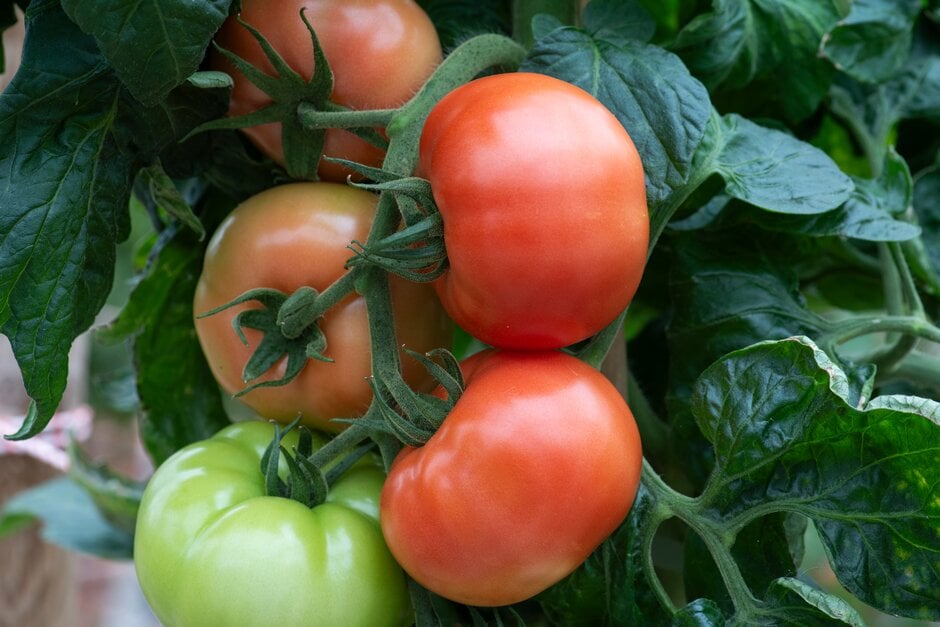 An easy-to-grow, compact, self-supporting bush variety to around 100cm in height with green leaves and large, flavoursome red fruits which can be harvested from July through to October. An ideal variety for compact spaces such a patio or small greenhouse. Does not require pinching out