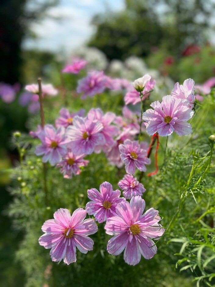 Cosmos can be annuals or perennials with simple or pinnately divided leaves and large, long-stalked daisy-like flowers in summer
