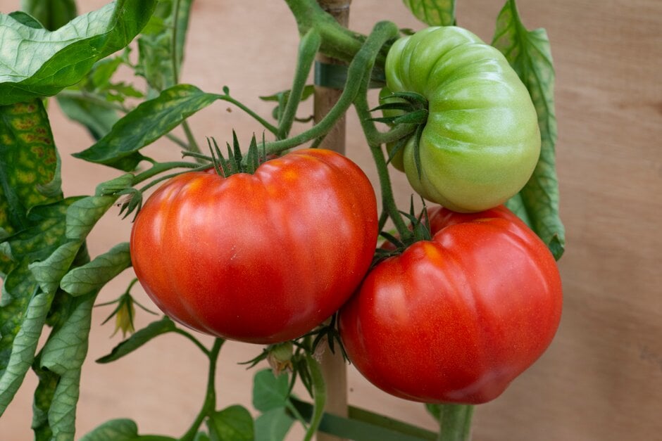 Start from seed or buy as small plants and grow on in a heated greenhouse or on a warm windowsill. Move to an unheated greenhouse or outside once all risk of frost has passed. Water regularly to keep the growing media evenly moist, feed every 10-14 days with a balanced liquid fertiliser before switching to a high potassium liquid feed once the first fruits have set. Provide support for cordon tomatoes. See tomato cultivation. For help with diagnosing tomato problems see our video What's gone wrong with my tomatoes?