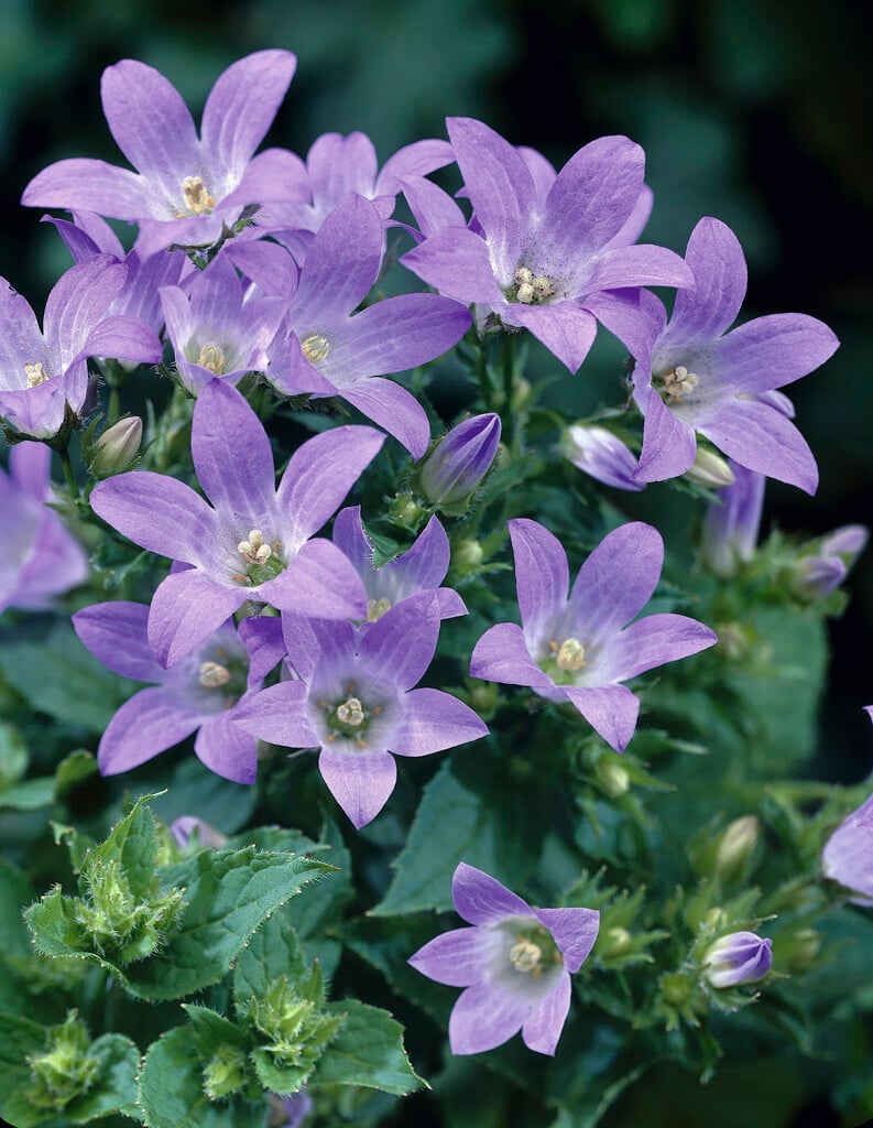 Campanula may be annuals, herbaceous or evergreen perennials, with bell or star-shaped, often blue, flowers in late spring or summer