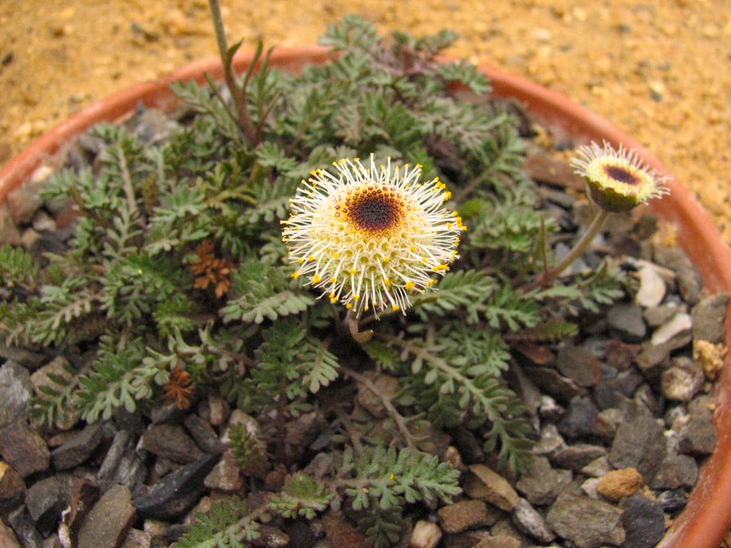 Leptinella are annuals and creeping, tufted or mat-forming perennials, forming low carpets of finely-divided, often aromatic, fern-like leaves. Button-like flowerheads on short stalks appear from late spring to summer