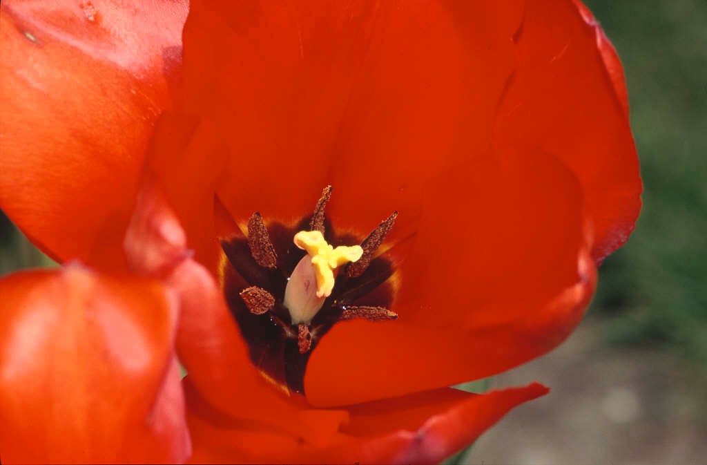 'Hollands Glorie' is a perennial bulb to 60cm tall, with lance-shaped, greyish-green leaves and solitary flowers with pointed petals, outside deep carmine shading to orange-red at edges, inside deep red