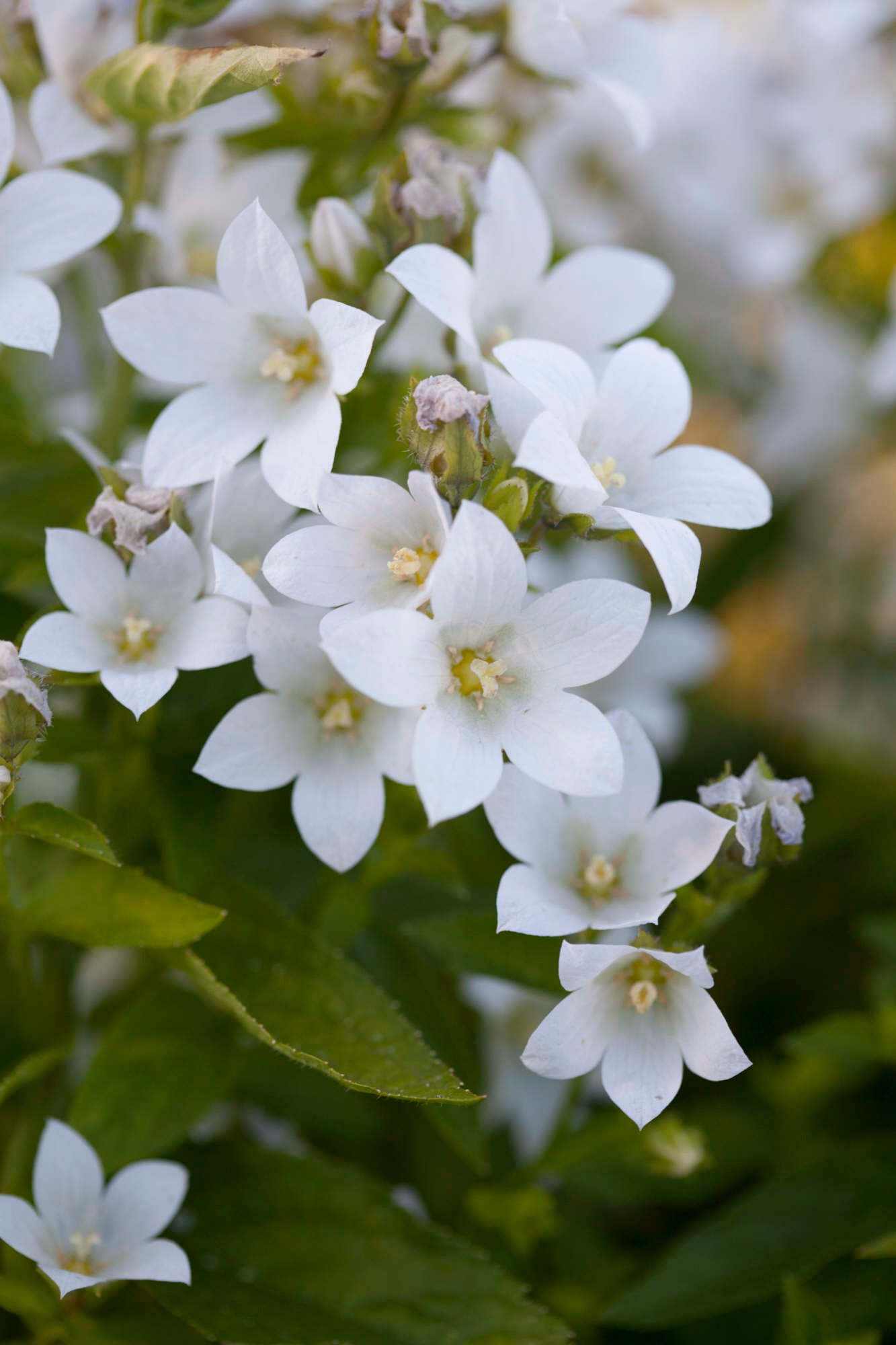 Campanula may be annuals, herbaceous or evergreen perennials, with bell or star-shaped, often blue, flowers in late spring or summer