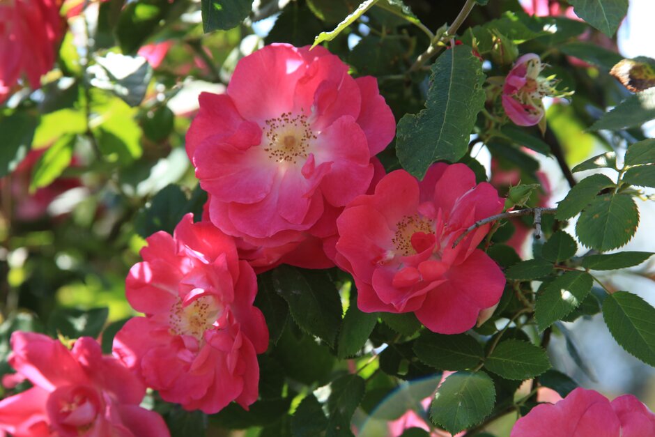 See pruning group 19 (groundcover roses); can be trained as a short climber, see pruning group 17 (climbing roses)