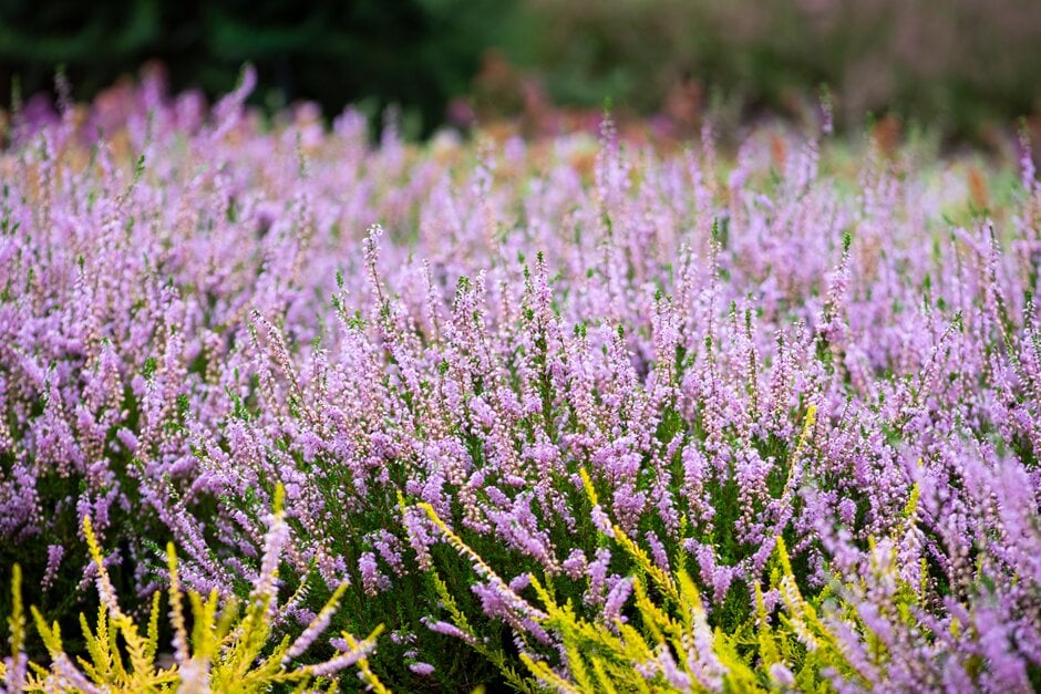 Calluna are low-growing or dwarf evergreen shrubs with stems clothed in tiny overlapping leaves, and terminal, spike-like racemes of small, 4-petalled flowers with coloured calyces