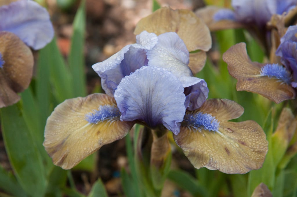 - Standard Dwarf Bearded irises are rhizomatous perennials 20-40cm tall, with flowers 5-7cm across, bearded on the falls, in late spring or early summer