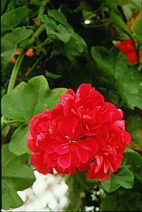 - Ivy-leaved pelargoniums are evergreen perennials of trailing habit, with fleshy, palmately lobed leaves and clusters of showy red, purple, pink or white flowers from early summer to autumn