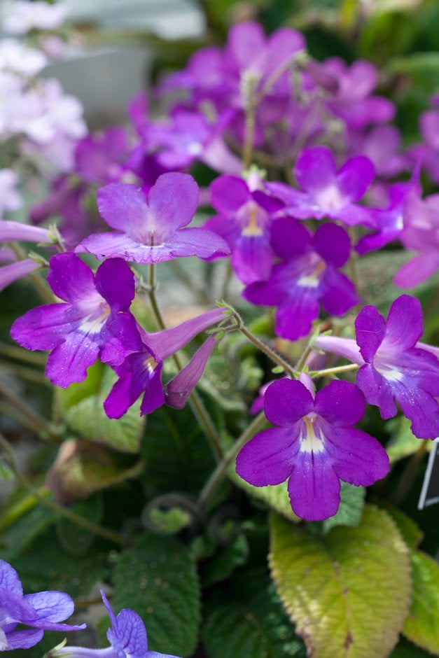 Streptocarpus can be annuals, perennials or subshrubs, with usually wrinkled, lance-shaped to rounded leaves and clusters of tubular to trumpet-shaped flowers with 5 spreading lobes, often borne throughout the year