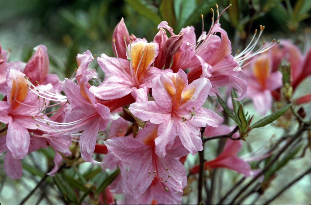 - Ghent azaleas are hardy deciduous shrubs derived from R. luteum and various American species. They have slender-tubed, funnel-shaped, usually fragrant flowers in early summer, in shades of pink, yellow, orange, red and white