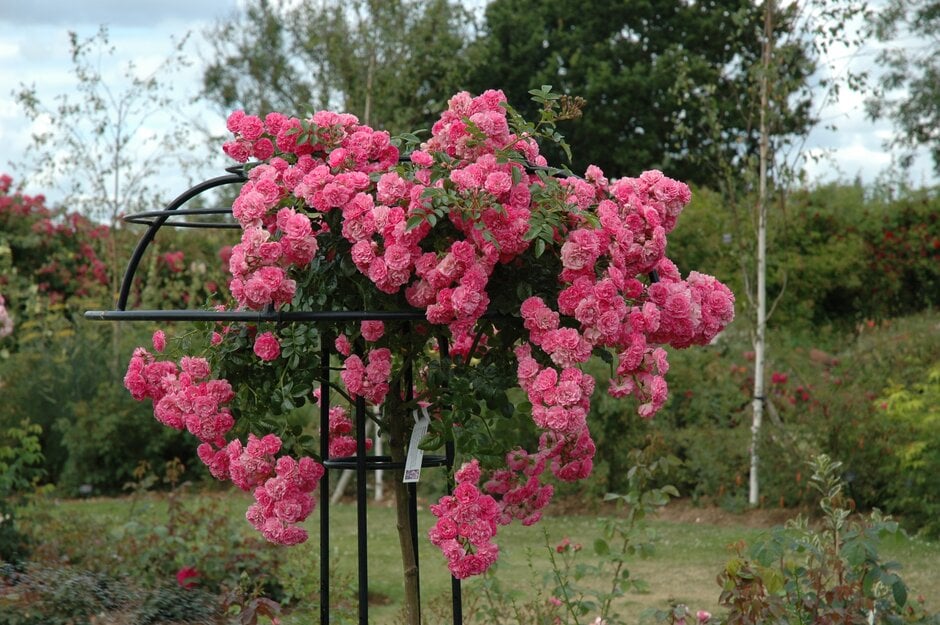See pruning group 18 (rambling roses) and our video How to prune rambling roses. Can be trained into trees or pillars, pergolas and arches