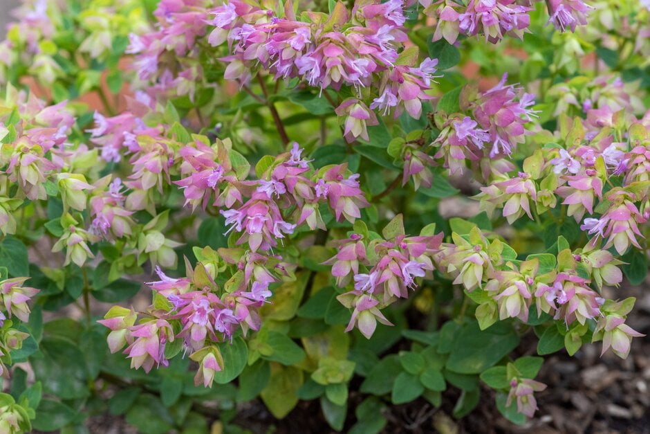Origanum may be herbaceous perennials or deciduous or evergreen sub-shrubs, with aromatic foliage and spikes of small tubular flowers usually with conspicuous bracts