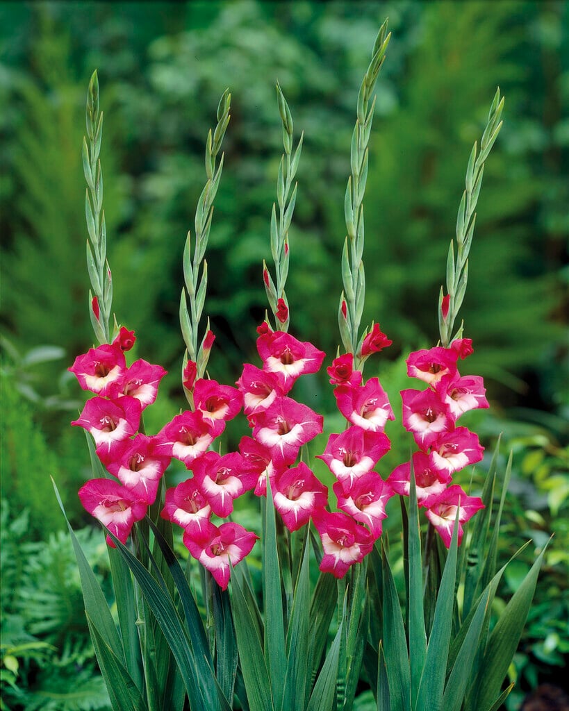 Gladiolus are cormous perennials with fans of sword-shaped or linear leaves and spikes of funnel-shaped flowers