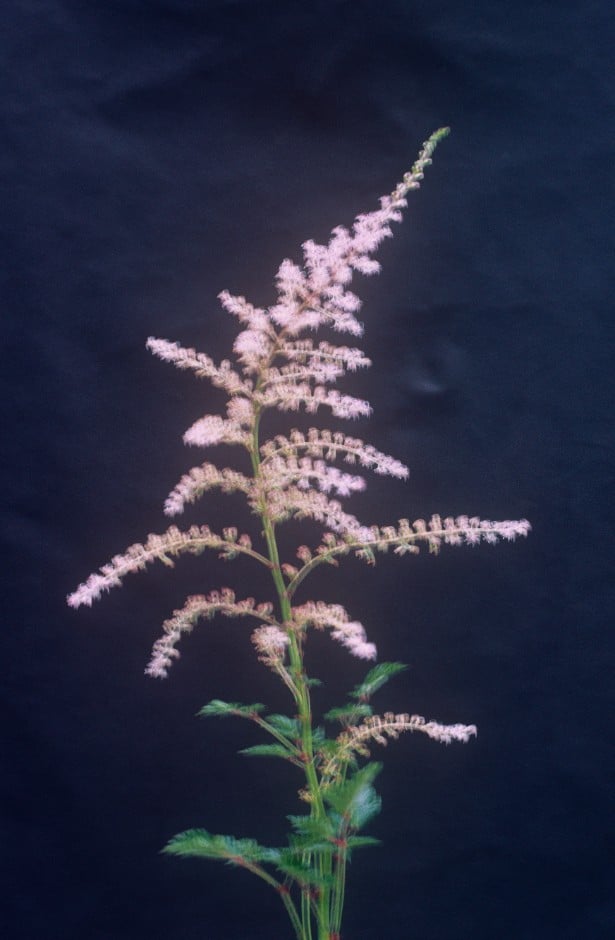 A short, clump-forming perennial to 30cm in height, with shiny, mid-green, divided leaves tinged bronze, and dark red stems. Loose, airy plumes of very pale pink flowers are produced in late summer