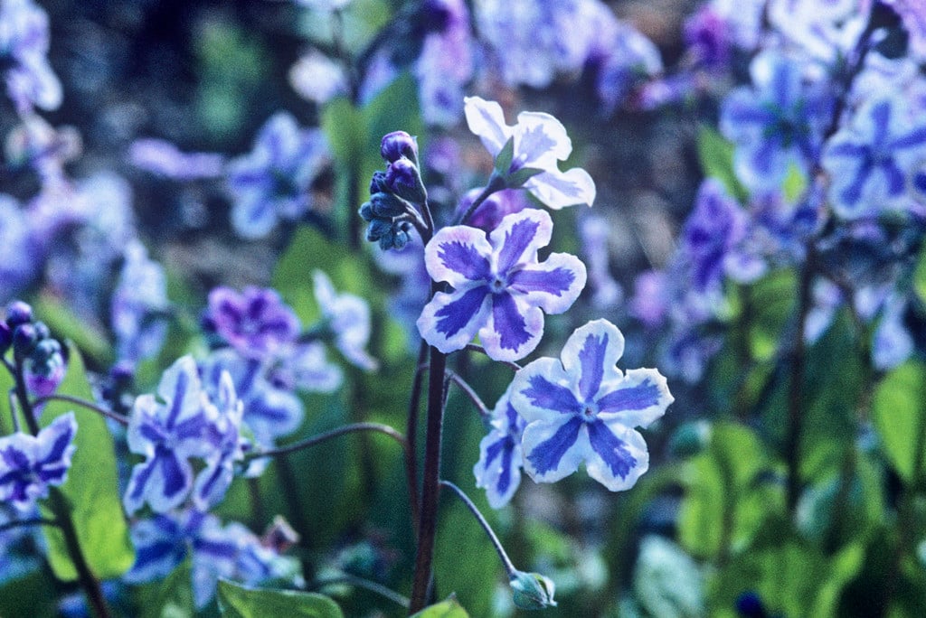 Omphalodes can be annuals, biennials or perennials, with simple leaves and terminal racemes or cymes of blue or white flowers resembling those of Myosotis (forget-me-not)