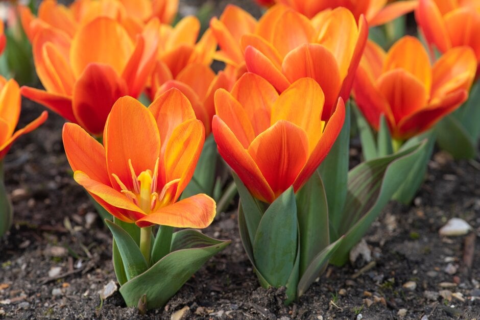 - Kaufmanniana Group tulips are small, often with purple-marked foliage, and have single, often bicoloured flowers in early spring