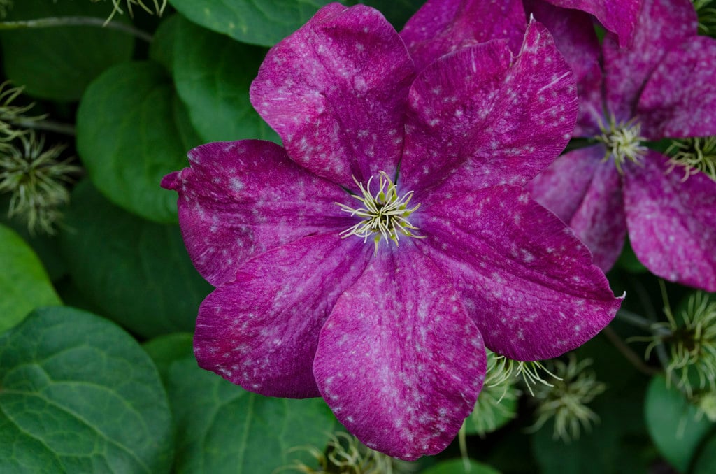 Clematis can be deciduous or evergreen shrubs or herbaceous perennials, mostly climbing by twining leaf-stalks, and often with showy flowers. Some have attractive fluffy seedheads in autumn