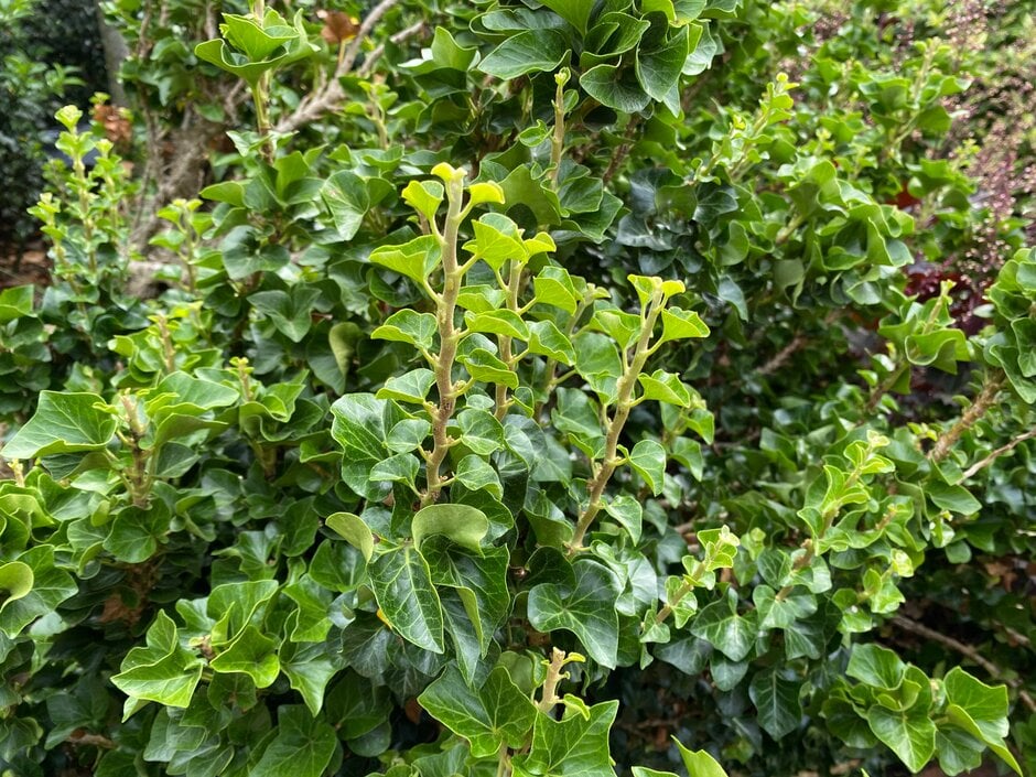 Hedera are evergreen climbing shrubs clinging by aerial roots. Clusters of small yellow-green flowers are followed by usually black berries. Foliage of flowering shoots is often less deeply lobed than that of the sterile, climbing shoots