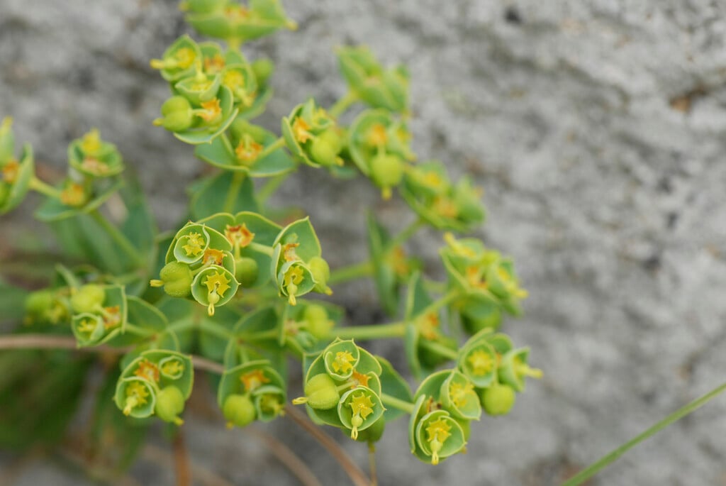Euphorbia can be annuals, perennials, shrubs or succulents, with milky sap and small flowers held within cupped, often colourful bracts