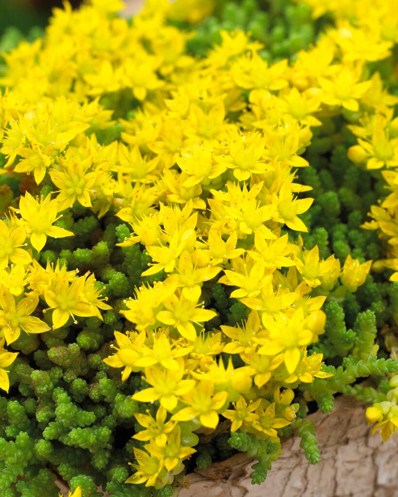 A mat-forming, low-growing, spreading evergreen alpine perennial to around 3cm in height, more compact than other cultivars, with elegant egg-shaped, succulent leaves which emerge pale green, turning darker as they mature. Star-shaped, golden yellow flowers appear in late spring to early summer. An ideal plant for ground cover, a green roof or for low maintenance raised beds or containers