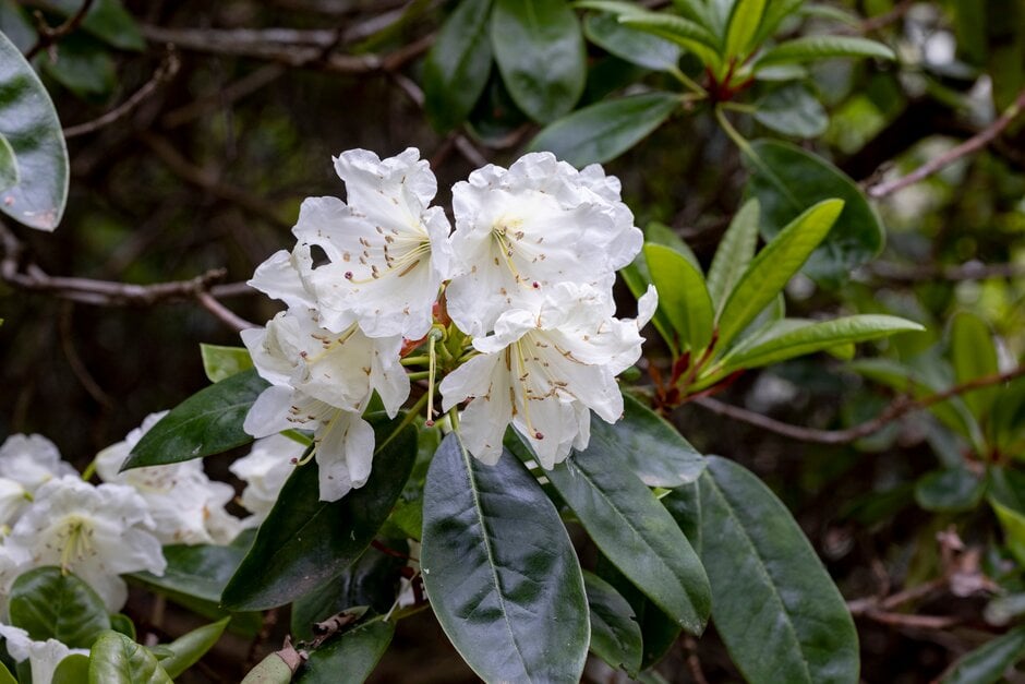 Rhododendron can be evergreen or deciduous shrubs or trees, with simple leaves, sometimes with a dense colourful indumentum of hairs on the lower side, and funnel-shaped, bell-shaped or tubular flowers that may be solitary or in short racemes