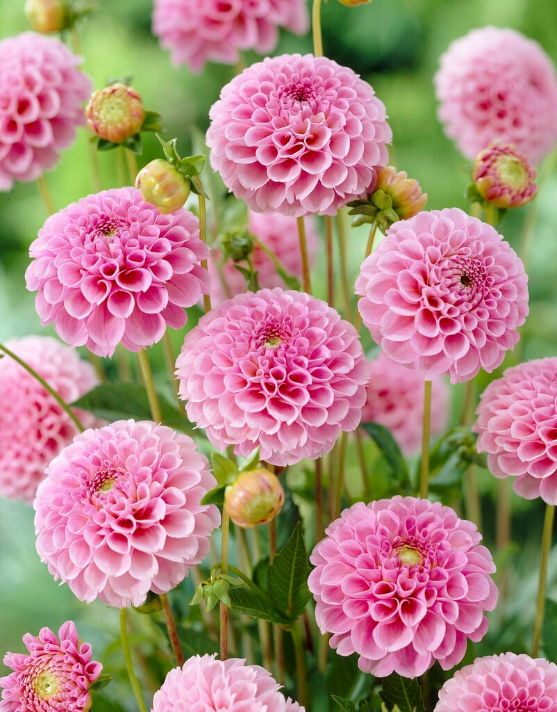 Ball dahlias have rounded, fully double flowerheads with partly incurved florets