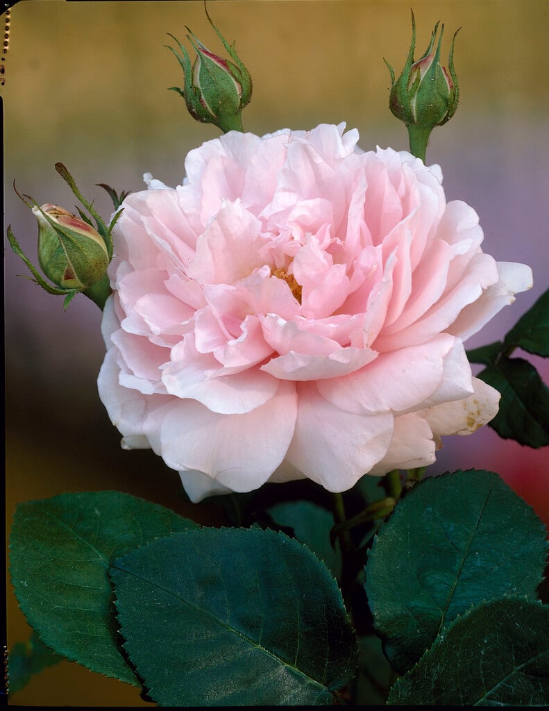 One of the original English rose cultivars, about 1-1.2m tall, with healthy dark green leaves, and bearing very fragrant, fully double, cup-shaped blooms, to 10cm across, blush-pink towards the edges with deeper pink centres, repeat-flowering from early summer to autumn