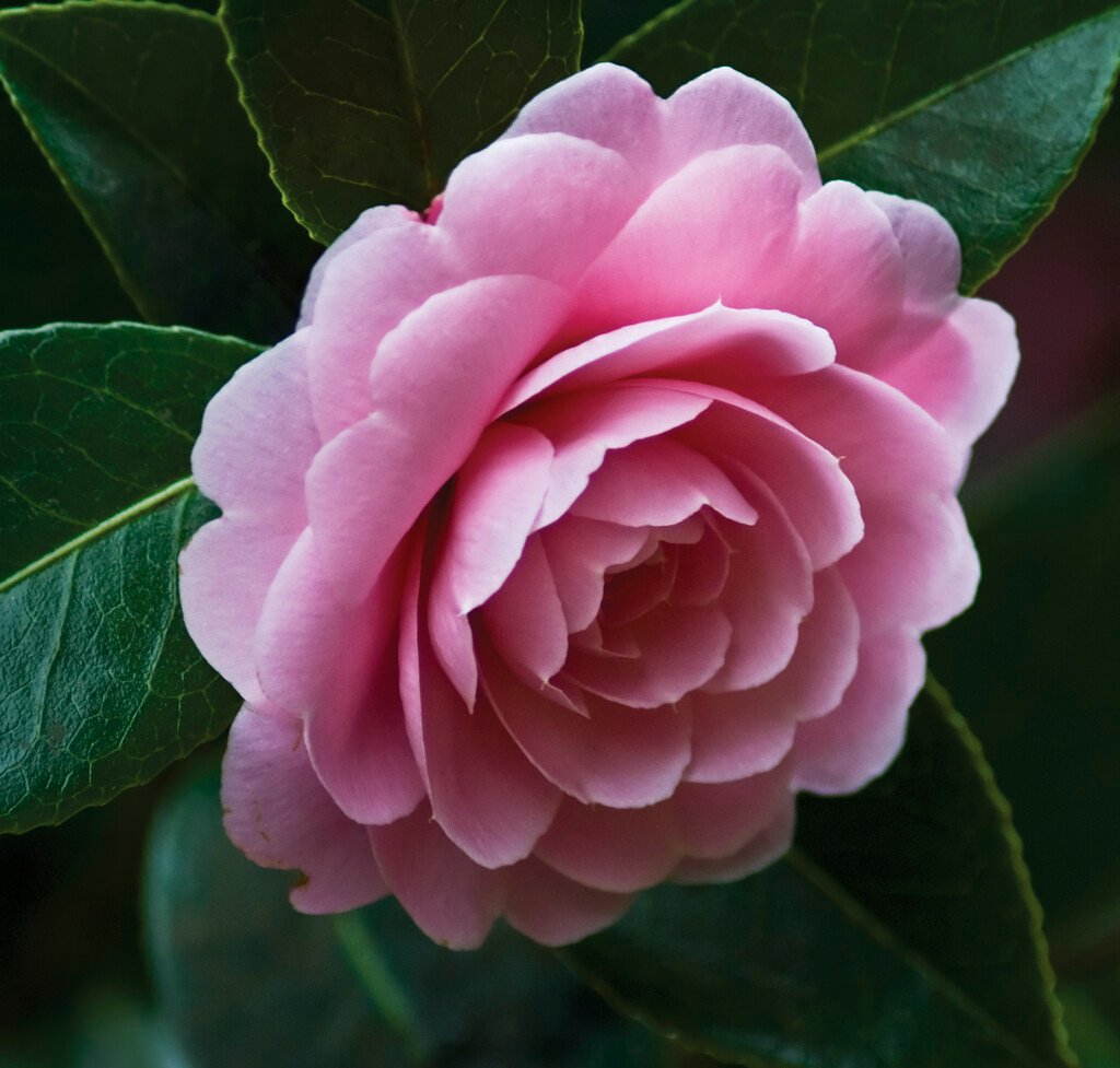 Camellia are evergreen shrubs with simple, ovate, glossy, leathery leaves and showy flowers with solitary or clustered flowers early in the year