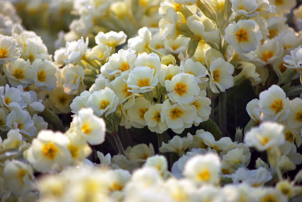 - Primrose group primulas are mainly grown as herbaceous perennials, and produce clusters of flowers on individual stems from the basal rosettes, although a few may also have umbel-like flowers. They are either spring-flowering, if grown without protection, or winter- to spring-flowering, if grown as biennial container plants in greenhouses or indoors.