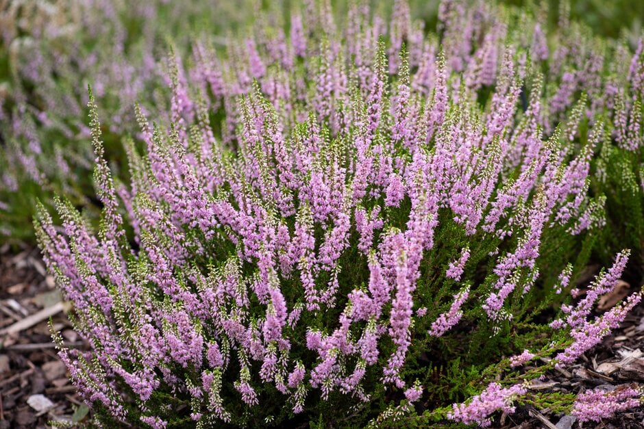Calluna are low-growing or dwarf evergreen shrubs with stems clothed in tiny overlapping leaves, and terminal, spike-like racemes of small, 4-petalled flowers with coloured calyces