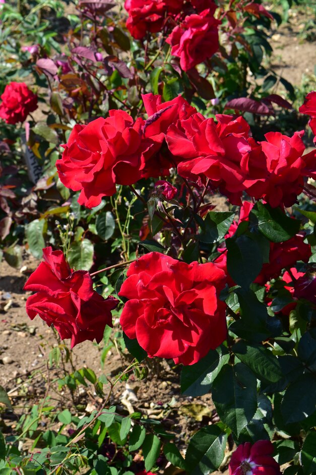 Rosa can be deciduous or semi-evergreen shrubs or scrambling climbers, with usually thorny stems bearing compound pinnate leaves and solitary or clustered flowers. Flowers may be followed by showy red or purple fruits in some varieties.
